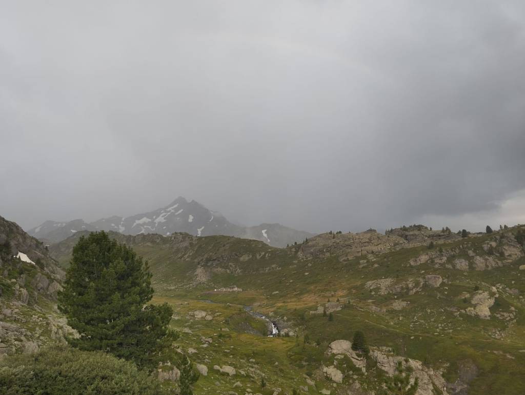 Nous décidons d’attendre au refuge que la pluie passe. Nous ne sommes que cinq, nous deux, les deux transalpistes et un alpiniste solitaire (qui me semble avoir un fort beau sac en dcf mais que je n’ose l’importuner). La pluie semble se calmer alors on décide de repartir, direction le refuge de l’Archeboc : ce soir on dort dans du dur !