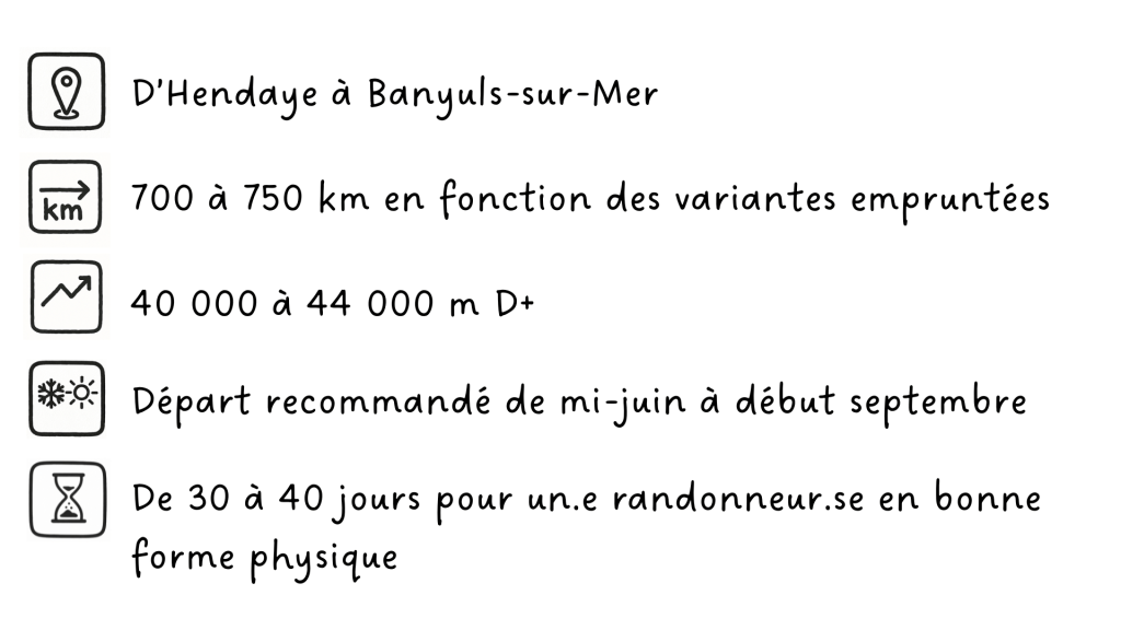 Personnellement, j’ai globalement suivi les étapes du topo guide le plus récent, celui de Marie Millet. Celui-ci est découpé en 40 étapes, et contient beaucoup d’infos stratégiques sur les possibilités de ravitaillement, quelques lieux de bivouac conseillés, etc.